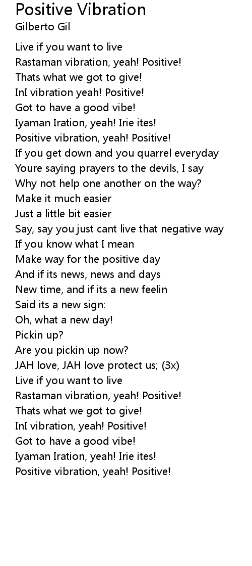 Rastaman vibration, yeah! Positive! |
