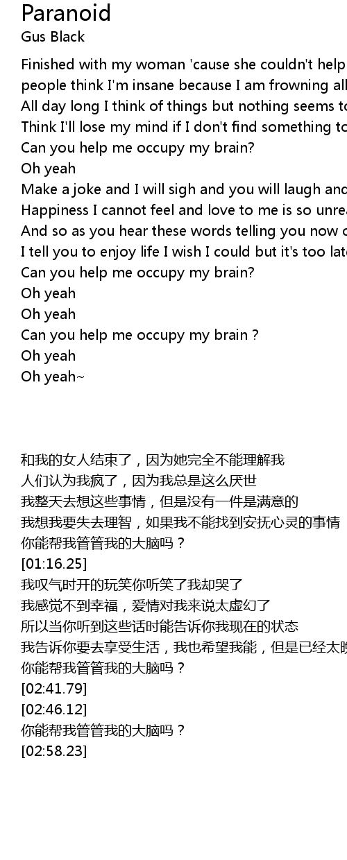 | [02:22.43] | I tell you to enjoy life I wish I could but it's too late |