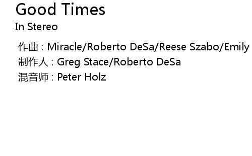 | [00:00.000] | zuo qu : Miracle Roberto DeSa Reese Szabo Emily Jacqueline Hanks |