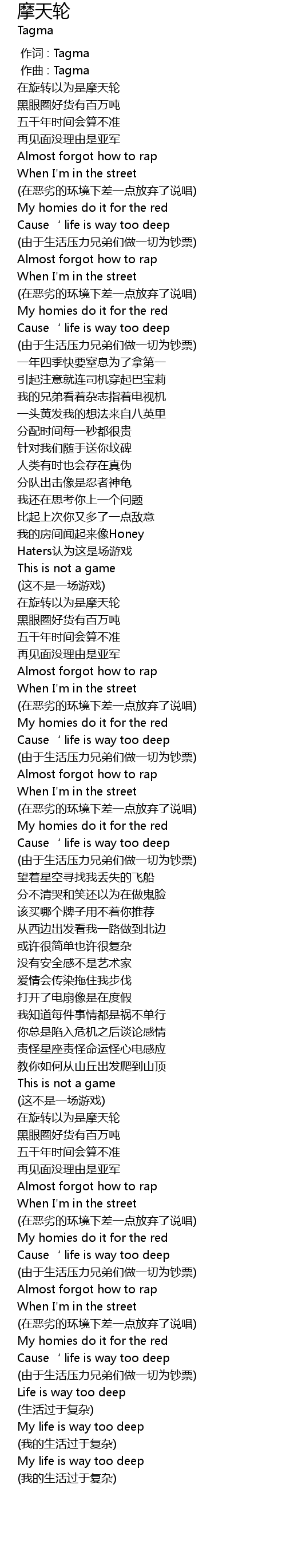 | [00:00.000] | 作词 : Tagma |