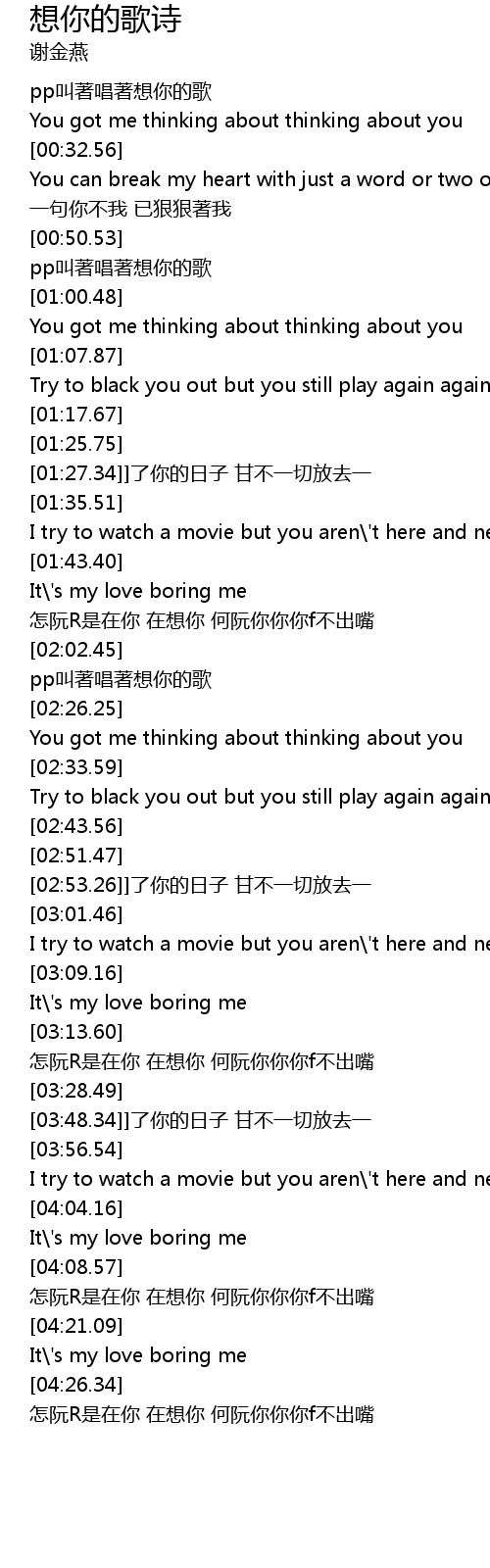 | [04:27.31] | 怎阮R是在你 在想你 何阮你你你f不出嘴 |