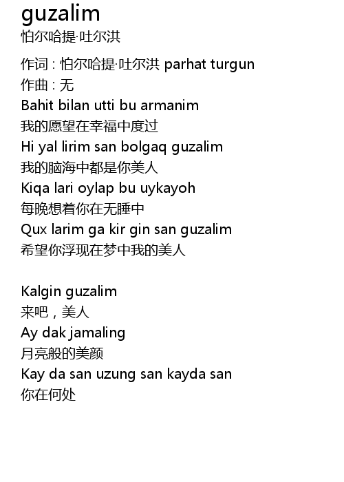 | 作词 : 怕尔哈提·吐尔洪 parhat turgun | |