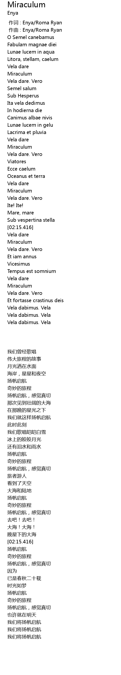 | [00:00.000] | zuò cí : Enya Roma Ryan |