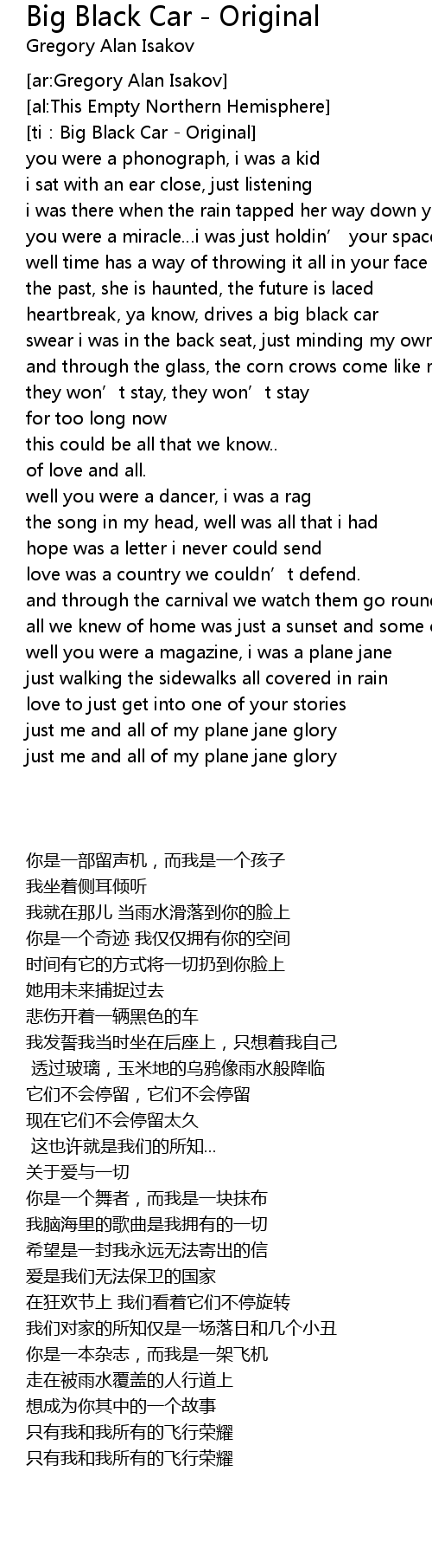 | [ti:Big Black Car - Original] | |