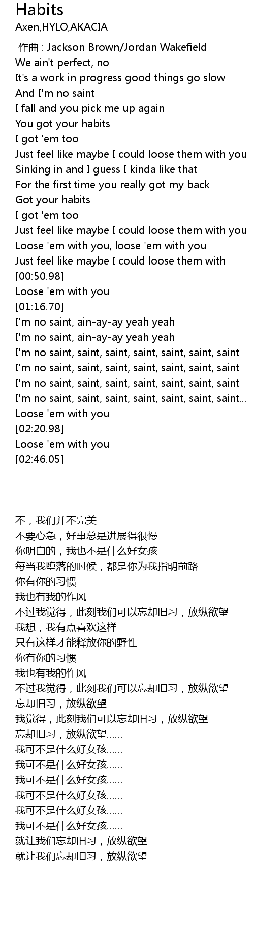 | [00:38.12] | Got your habits |