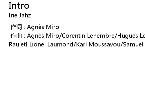 | [00:00.000] | 作曲 : Agnès Miro/Corentin Lehembre/Hugues Lehembre/Julien RauletI Lionel Laumond/Karl Moussavou/Samuel Lavignasse |