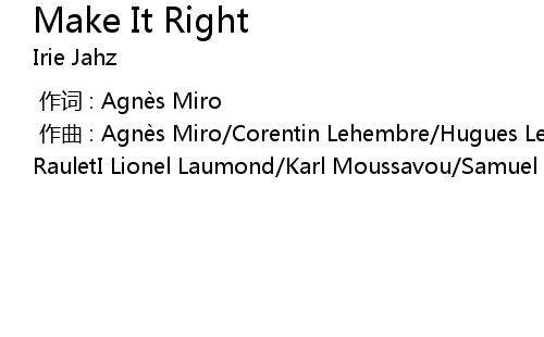 | [00:00.000] | zuò qǔ : Agnè s Miro Corentin Lehembre Hugues Lehembre Julien RauletI Lionel Laumond Karl Moussavou Samuel Lavignasse |