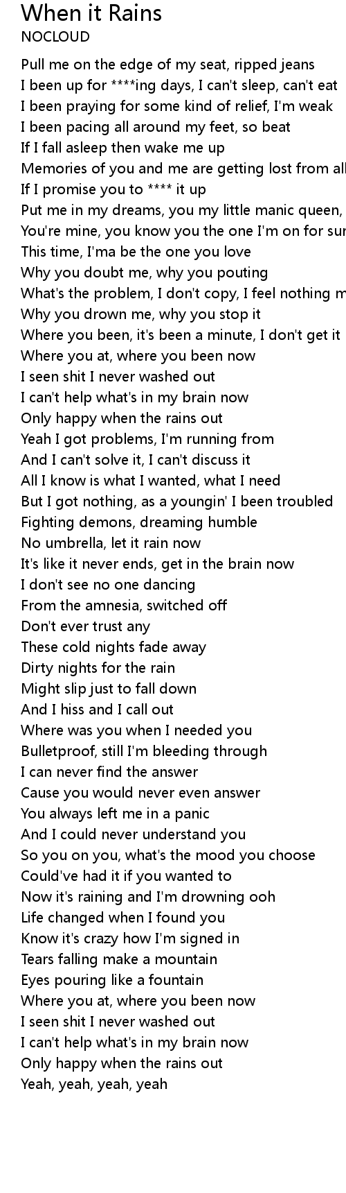 Now it's raining and I'm drowning ooh |