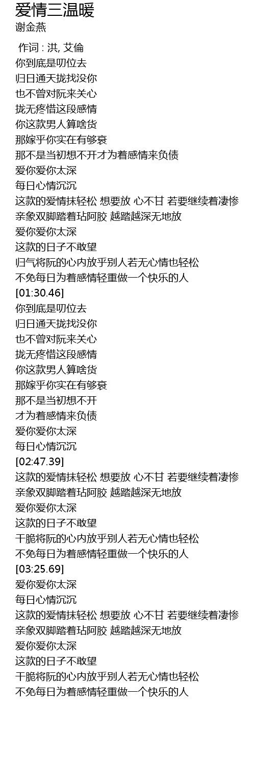 | [03:29.58] | 爱你爱你太深 |