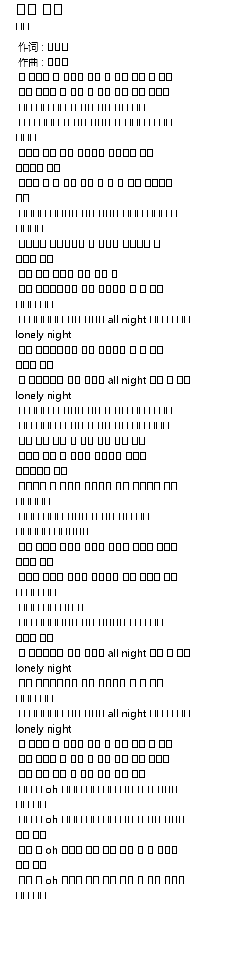 날 괴롭히는지 몰라 이밤은 all night 몰라 너 없는 lonely night |