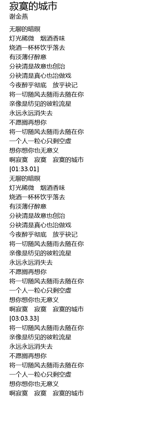 | [03:39.96] | 啊寂寞 寂寞 寂寞的城市 |