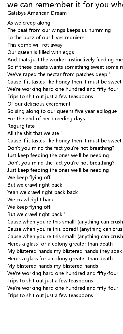 we can remember it for you wholesale Lyrics