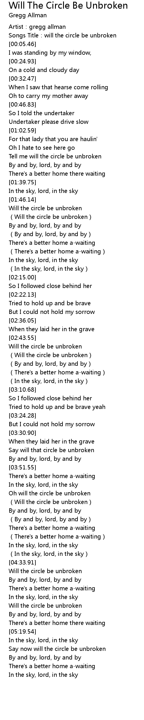 | [02:48.78] | Will the circle be unbroken |