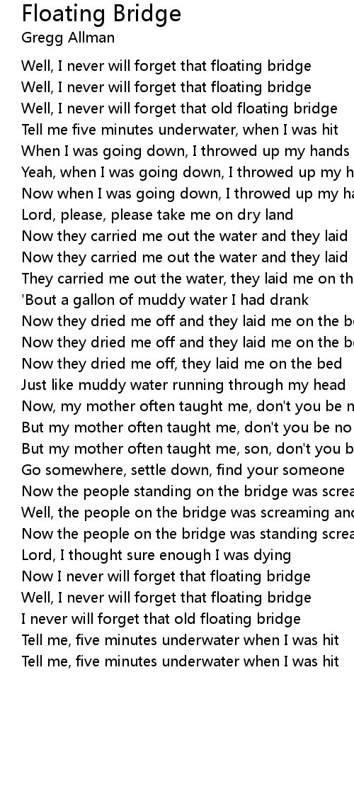 Well, I never will forget that old floating bridge |