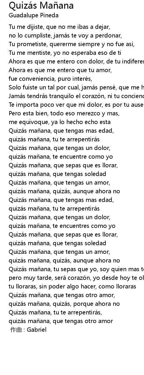 | Quiza s ma ana, tu sepas que yo, soy quien mas te he querido, | |