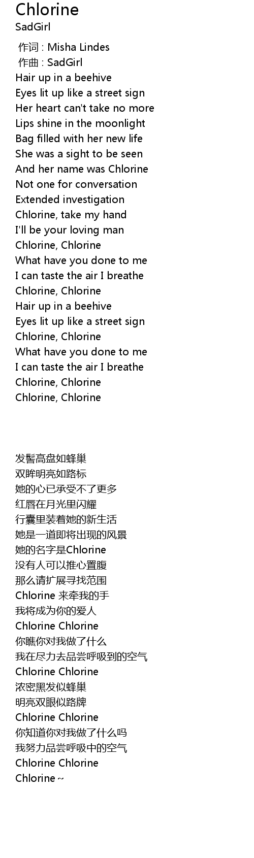| [01:40.93] | Chlorine, Chlorine |