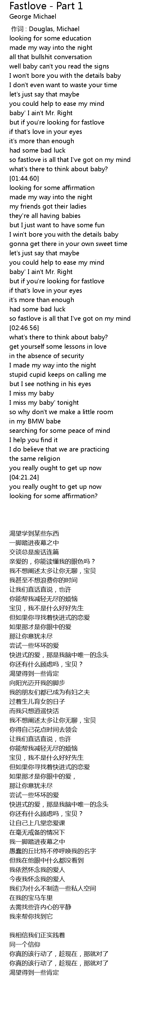 | [00:00.00] | 作词 : Douglas, Michael |