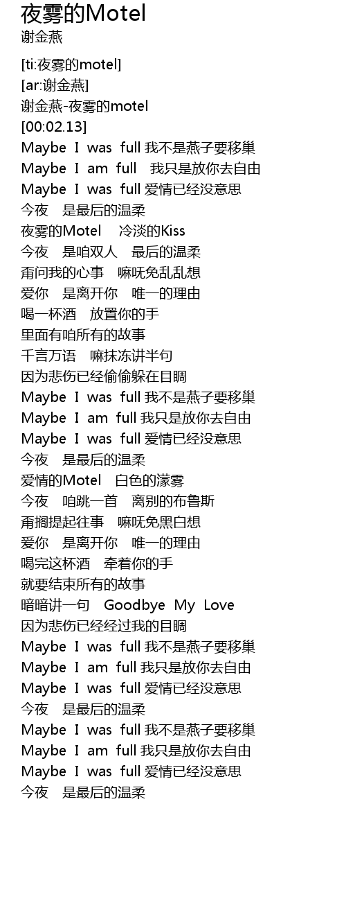 | [00:00.25] | 谢金燕-夜雾的motel |