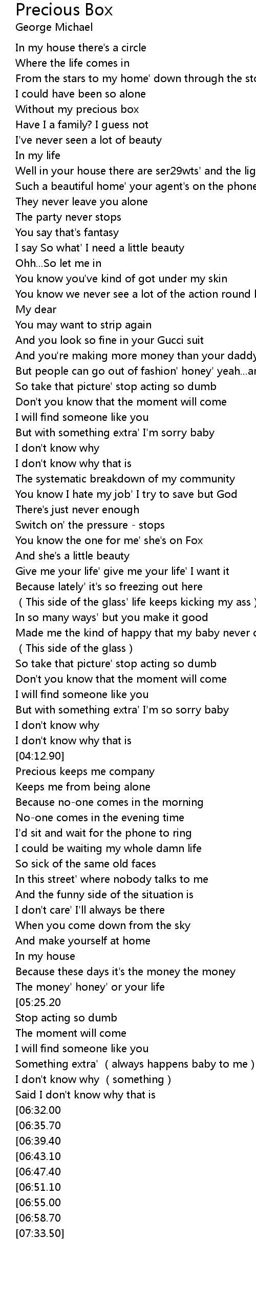 | [00:52.40] | Without my precious box |