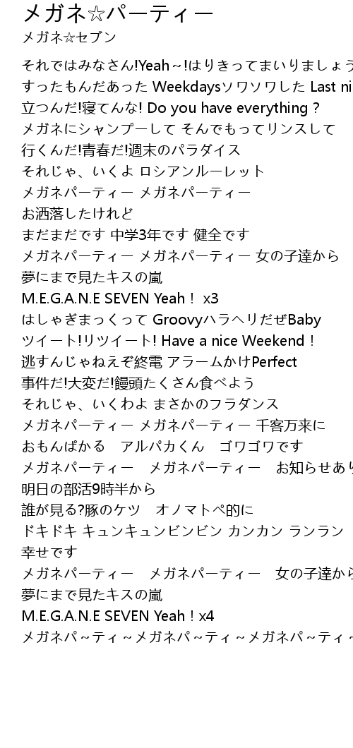 | [03:19.67] | メガネパーティー メガネパーティー 女の子達から |