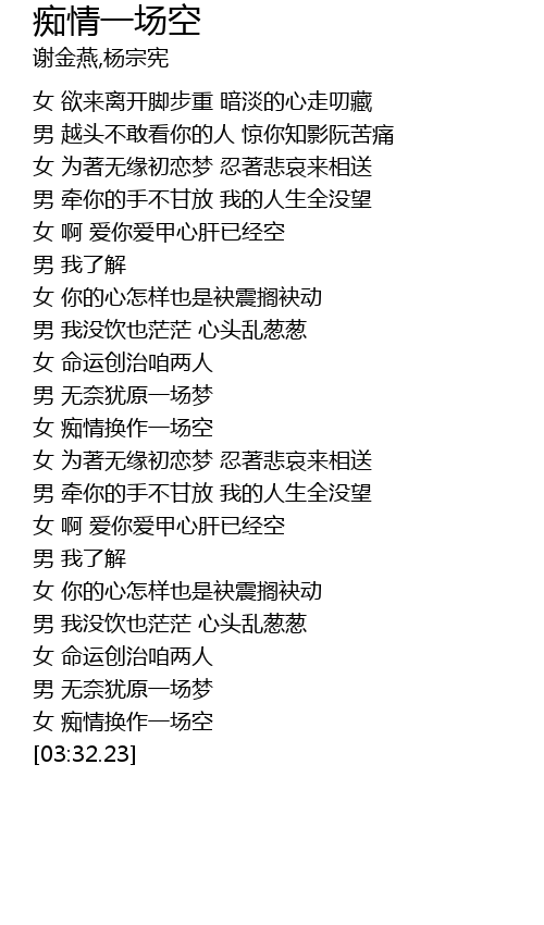 | [03:19.07] | 男 无奈犹原一场梦 |