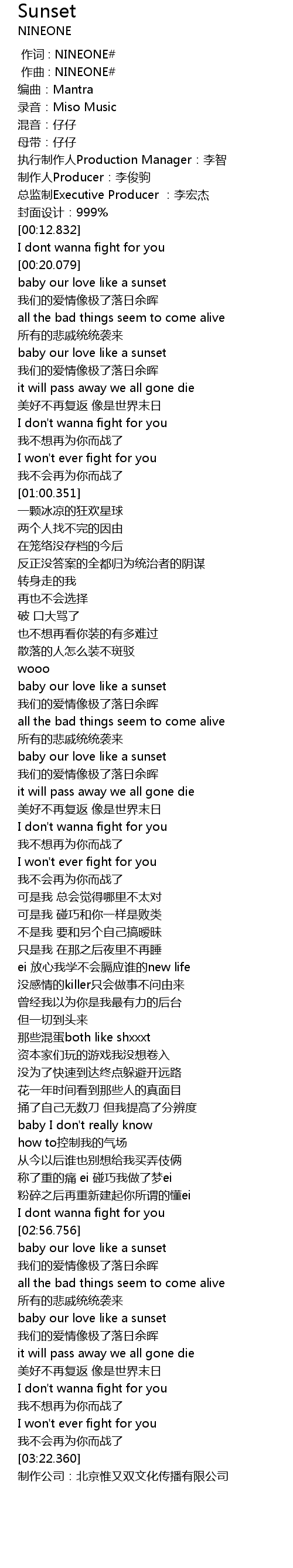 | [03:22.742] | 制作公司:北京惟又双文化传播有限公司 |