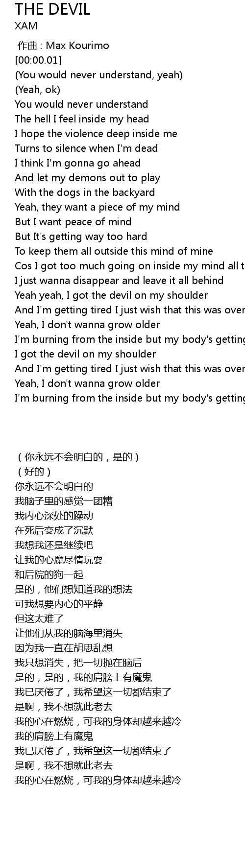 | [00:59.92] | Yeah yeah, I got the devil on my shoulder |