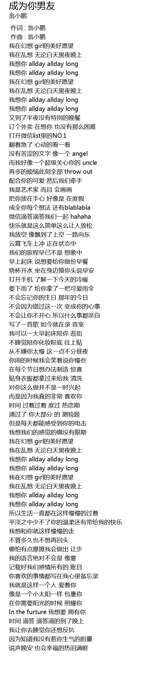 | [00:16.50] | wǒ xiǎng nǐ allday allday long |