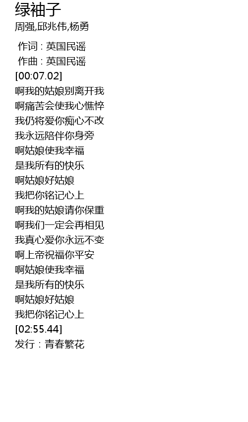 | [00:01.000] | zuò qǔ : yīng guó mín yáo |