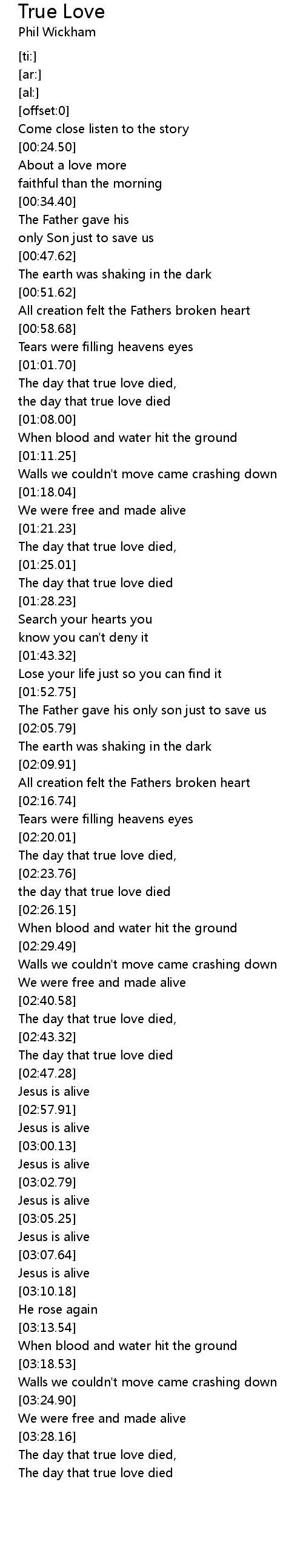 The day that true love died, |