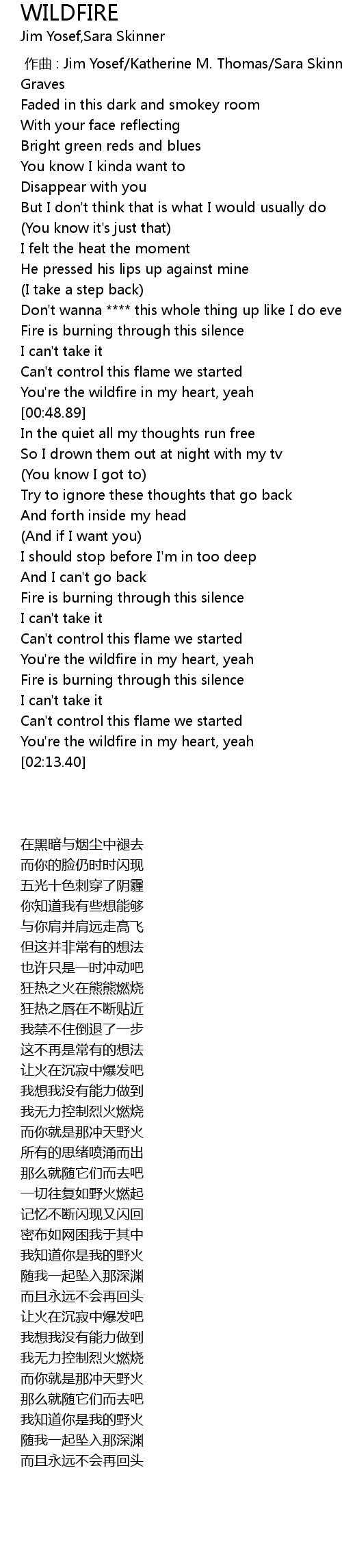 | [00:45.48] | You're the wildfire in my heart, yeah |
