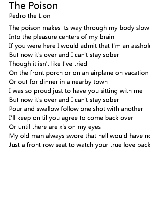 The poison makes its way through my body slowly |