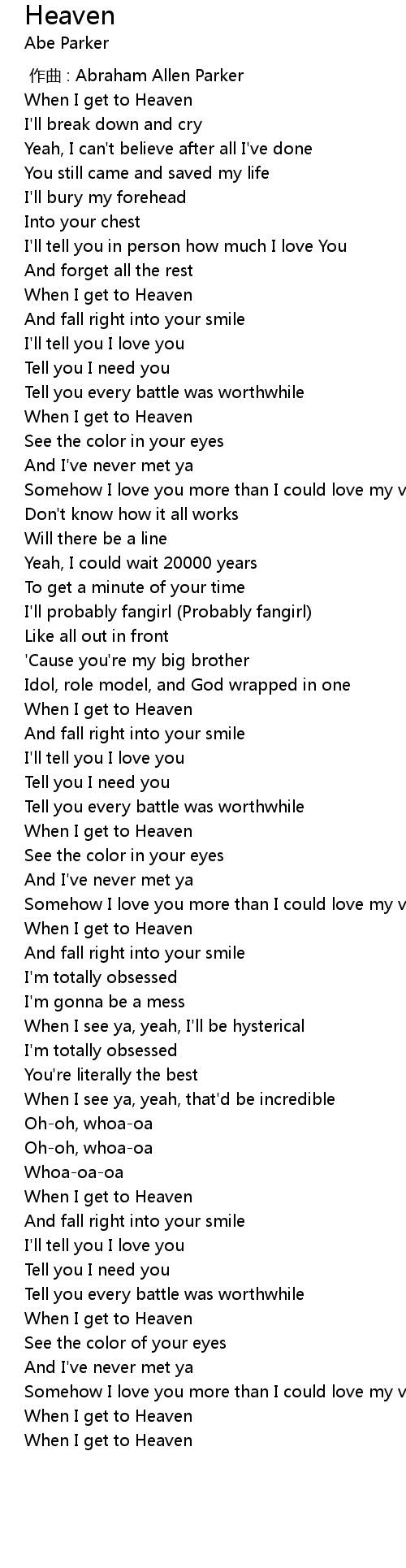 | [00:00.000] | 作曲 : Abraham Allen Parker |