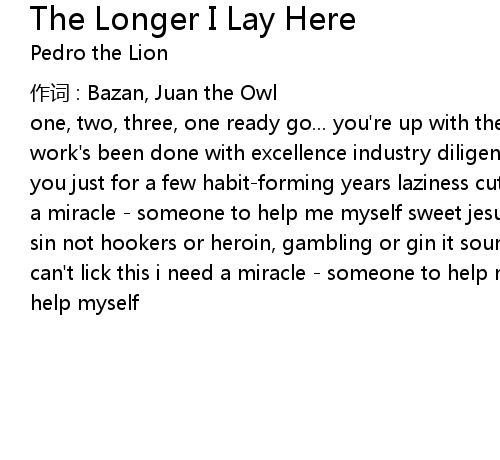 | one, two, three, one ready go... you're up with the sunrise and down when the work's been done with excellence industry diligence naturally i would like to be you just for a few habit-forming years laziness cuts me like fine cutlery i need a miracle - someone to help me myself sweet jesus, i need you forgive me this sin not hookers or heroin, gambling or gin it sounds so ridiculous, but i just can't lick this i need a miracle - someone to help me myself someone to help me help myself |