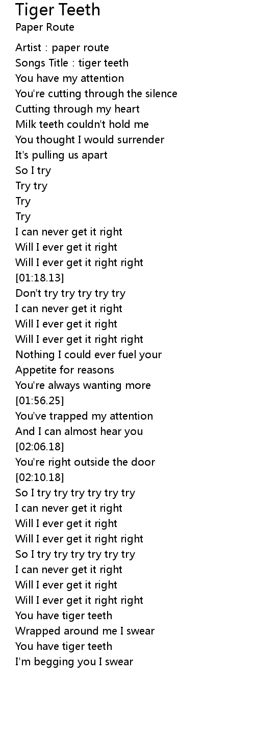 | [00:03.20] | Songs Title: tiger teeth |