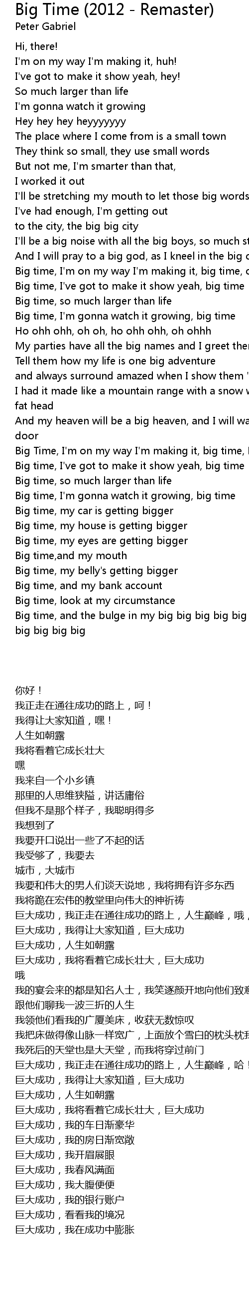 Big time, I'm on my way I'm making it, big time, oh yes |