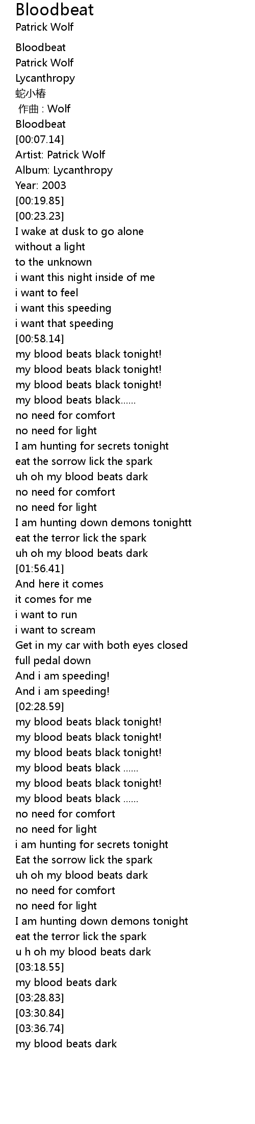 | [03:14.19] | u h oh my blood beats dark |