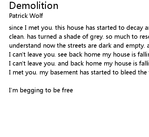 | since I met you. this house has started to decay and every wall that once was clean. has turned a shade of grey. so much to rescue. so much you just cant understand now the streets are dark and empty. and the problem's in our hands. | |
