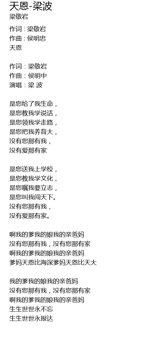 | 爹妈天恩比海深爹妈天恩比天大 | |