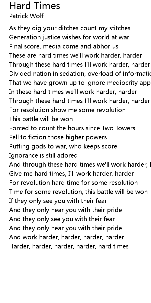 Harder, harder, harder, harder, hard times |