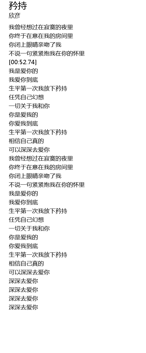 | [00:44.18] | 不说一句紧紧抱我在你的怀里 |