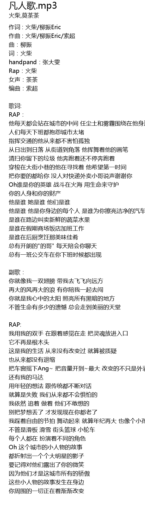 | 作曲 : 火柴/柳振Eric/索超 | |