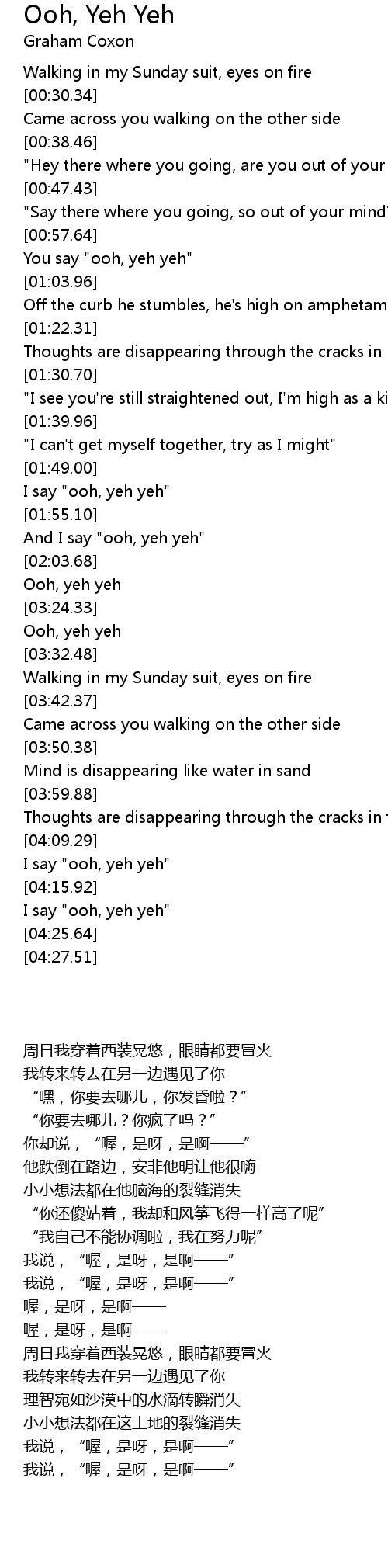 [01:33.58] "I see you're still straightened out, I'm high as a kite"