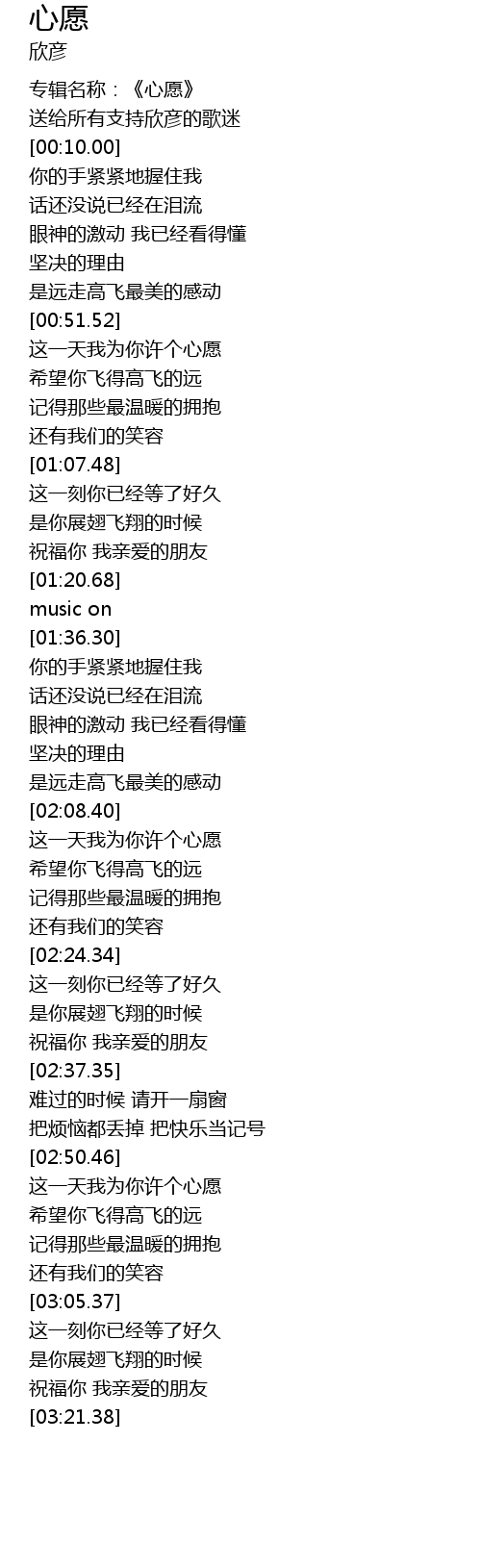 | [00:02.00] | 专辑名称:《心愿》 |
