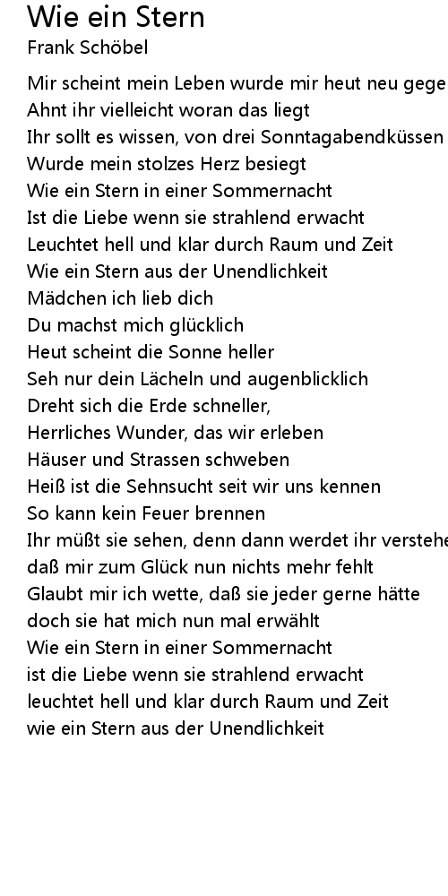 | Song | Wie ein Stern |