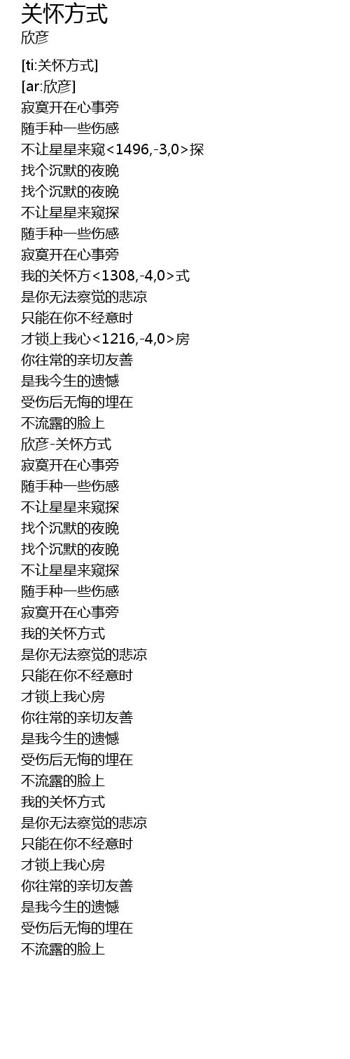 | [01:09.391] | xīn yàn guān huái fāng shì |