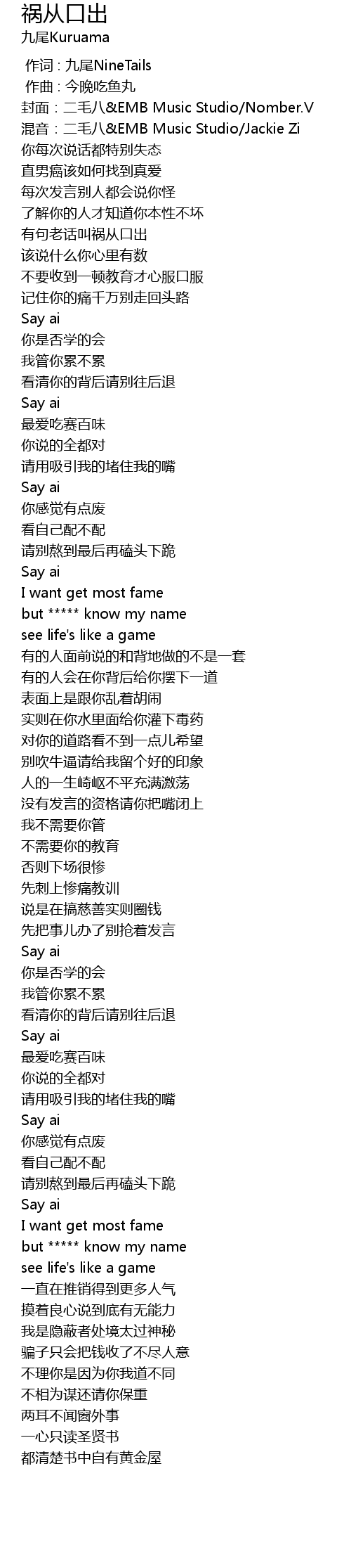 | [00:20.81] | yǒu jù lǎo huà jiào huò cóng kǒu chū |