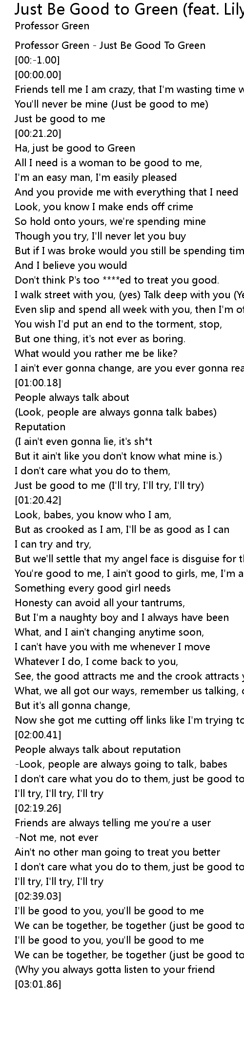 [00:-2.00] Professor Green - Just Be Good To Green