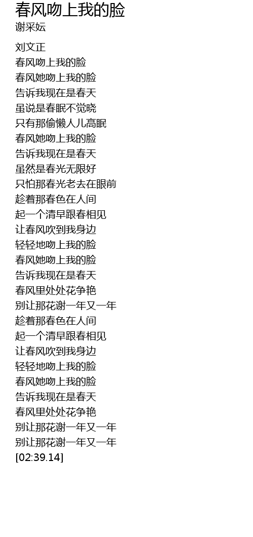 [00:39.07] 春风她吻上我的脸