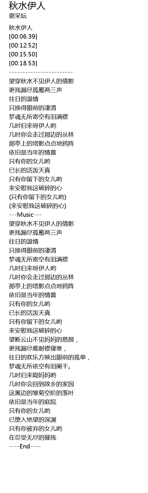 | [03:02.19] | 更残漏尽孤雁两三声 |